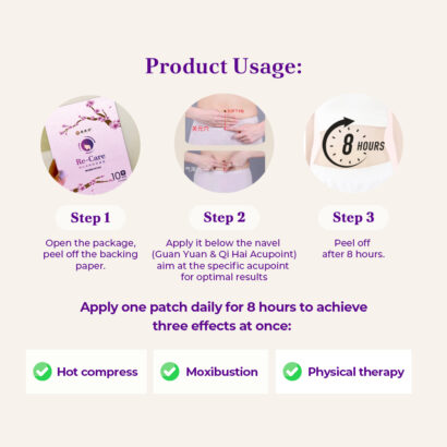 Moxibustion Infrared Paste (暖宫宝)are formulated by our chinese TCM with many years of chinese traditional experience to soothes and regulate their menstrual issues such as low menstrual flow, cramping, irregularities, lower abdominal distention and female hormone imbalance.